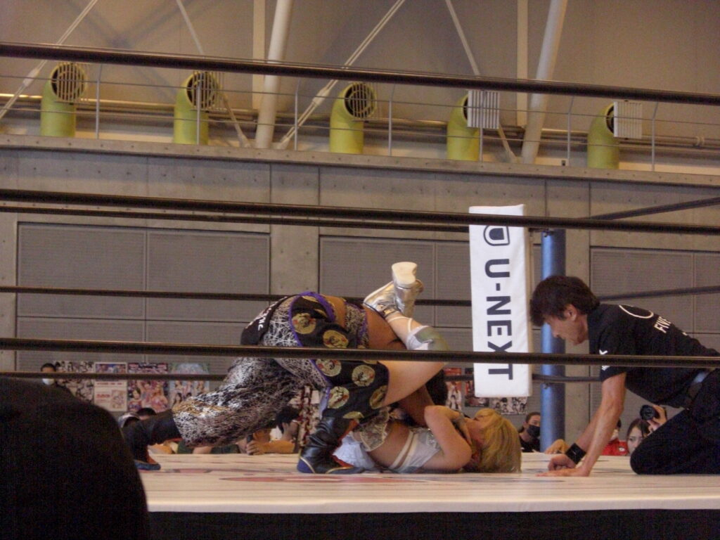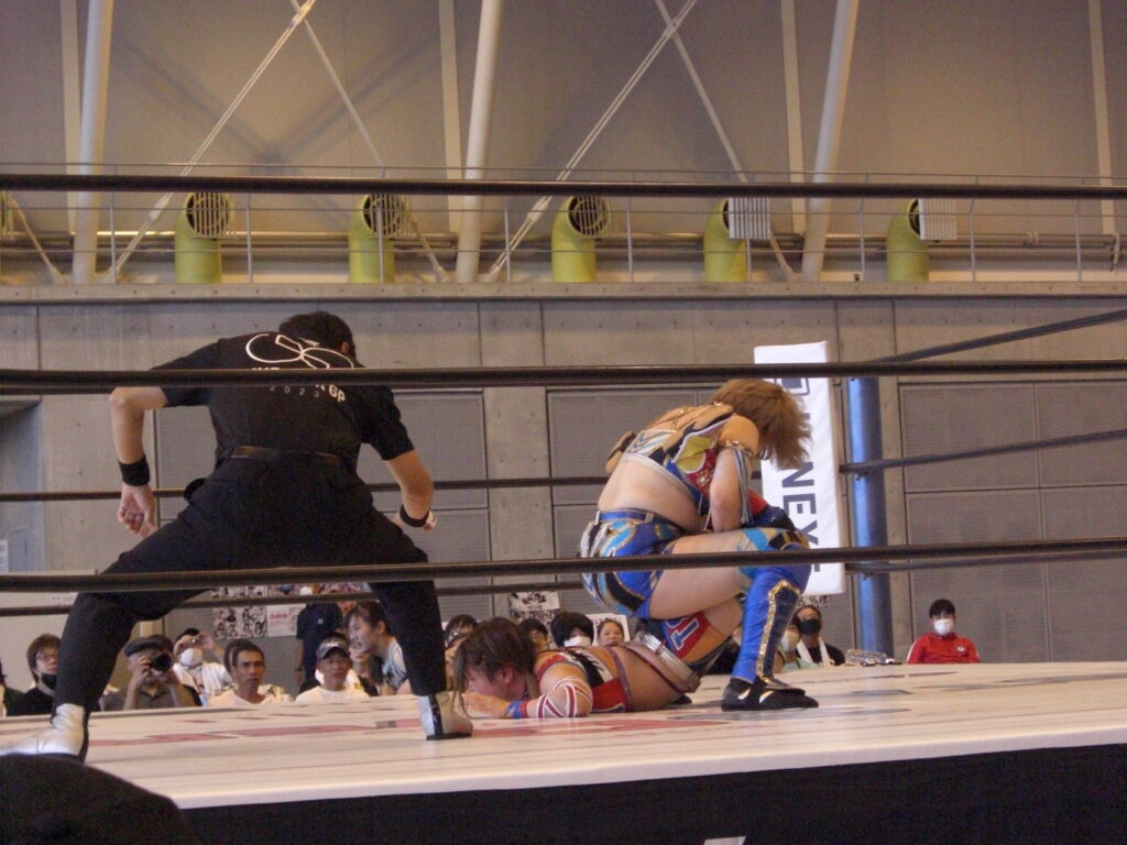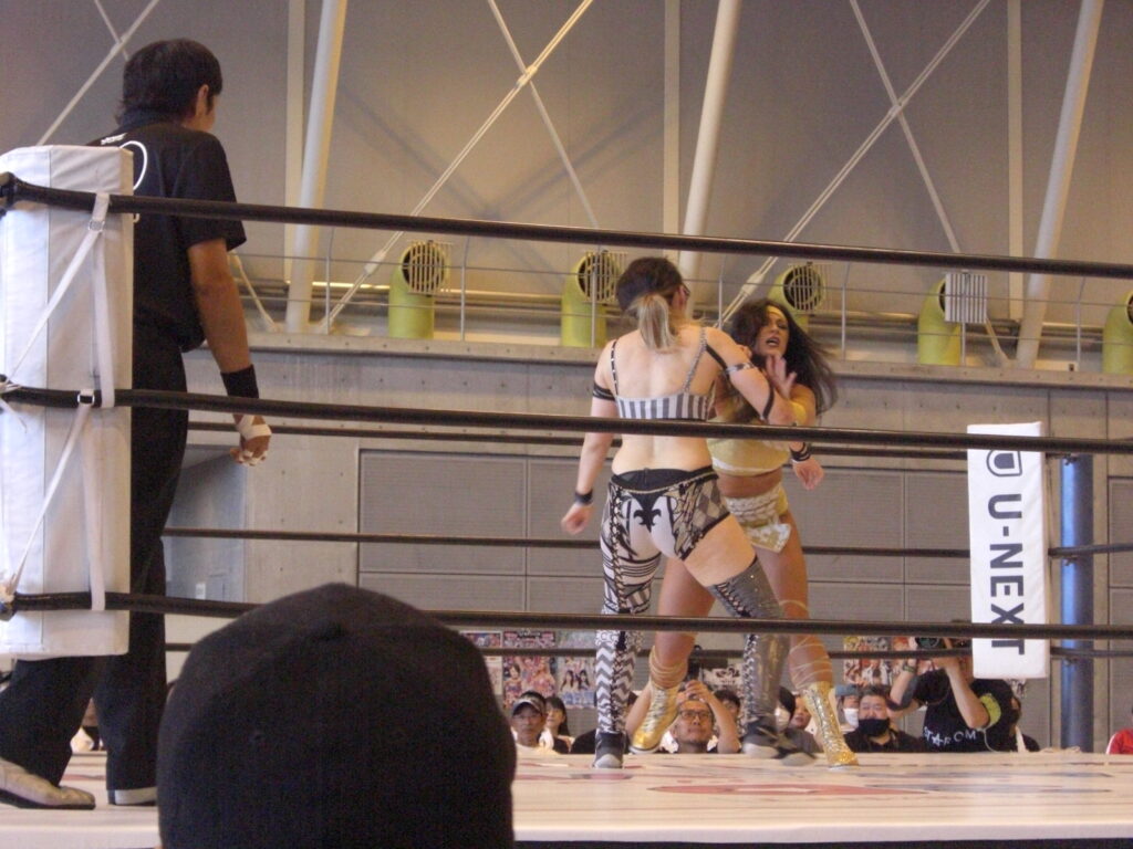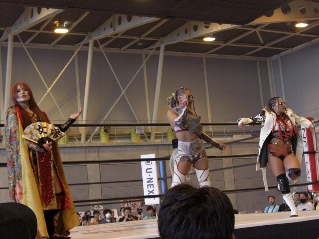いよいよ、試合がはじまる。第1試合目のHANAKO、月山和香、天咲光由試合が開幕戦が始まる。