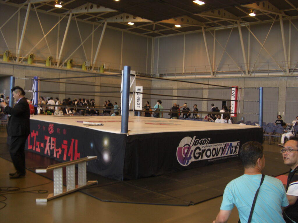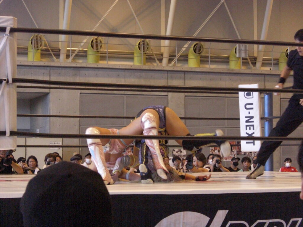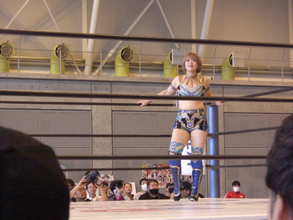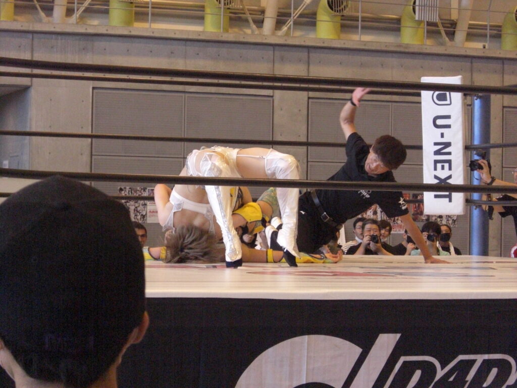 いよいよ、試合がはじまる。第1試合目のHANAKO、月山和香、天咲光由試合が開幕戦が始まる。