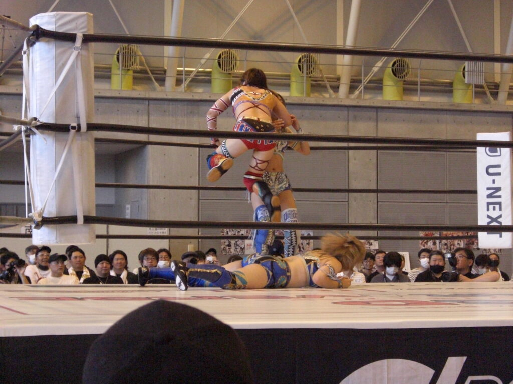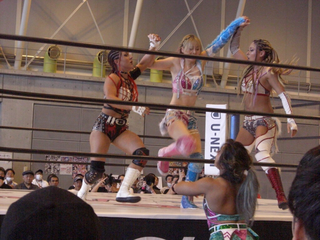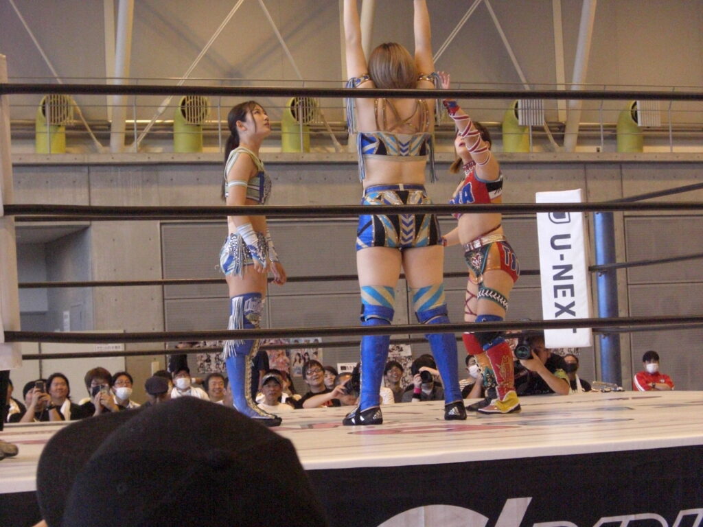 試合は月山和香が天咲光由をピンフォールを奪って、3ウェイマッチを制する。