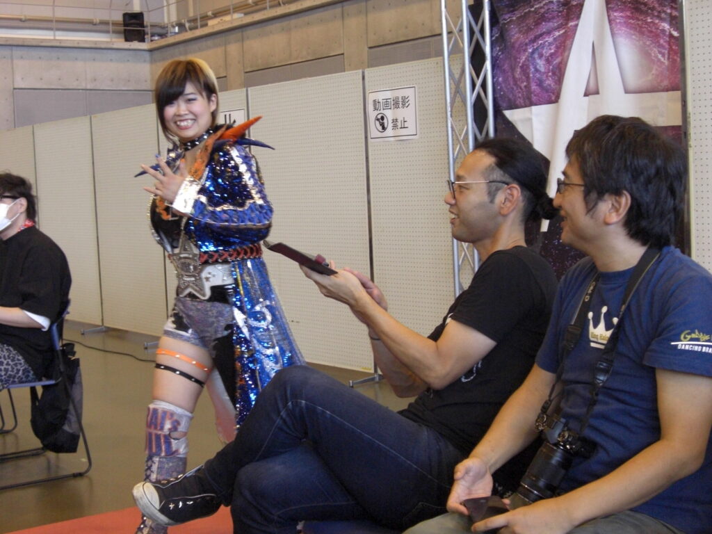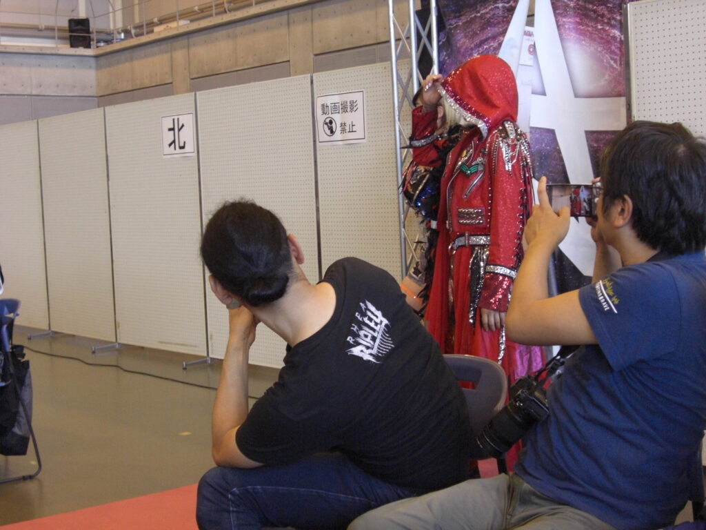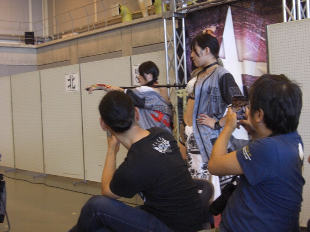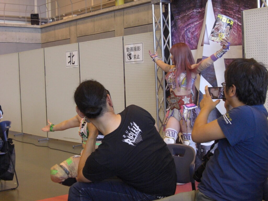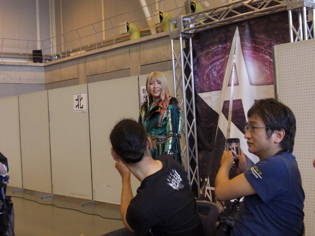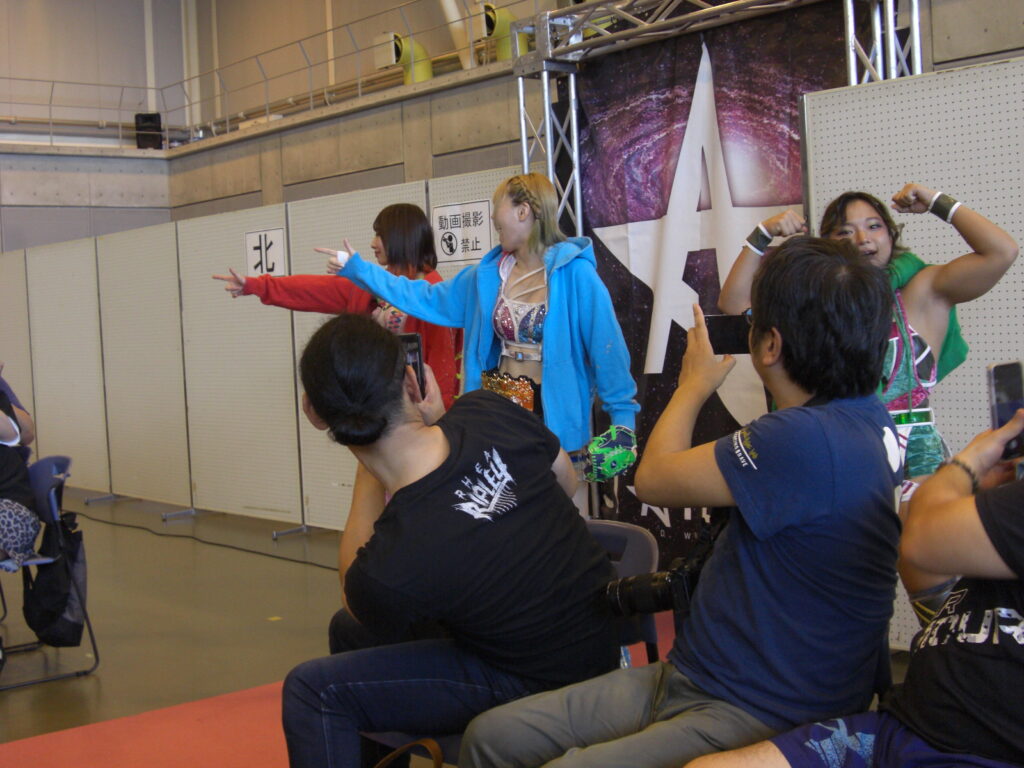 会場に入ると、一列の群衆が会場の前に並びながら、何かと思えば、乙女たちの親衛隊かのような、支援隊であった。